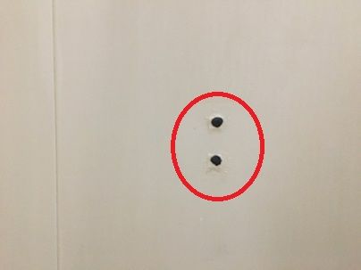 シャワーフックが外れた跡です。とりあえず、手元にあったクリアーのコーキングで穴をふさいでありましたが、ふさいであるように見えません。明らかに目立ちます。