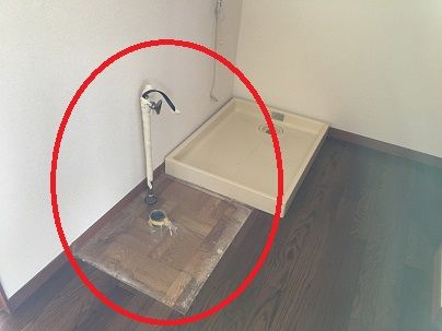 このアパート、私が洗面台を壊してしまってこんな様子です。赤丸の中に水だけが出る洗面台がありました。