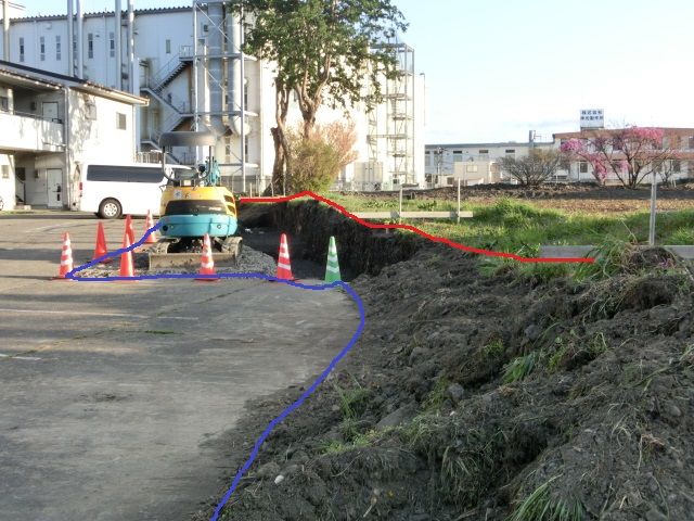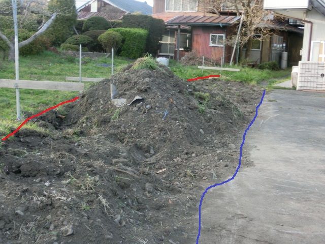 実は、この物件の隣地からの土が崩れています。擁壁をつくることで越境問題を解決し、駐車場スペースを拡張します。