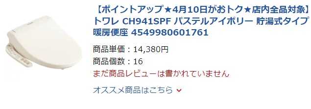 さらにこのショップで何台ウォシュレットを購入してもショップ数としてのカウントが1にしかならないことを考えて、サッサと購入することにしました。