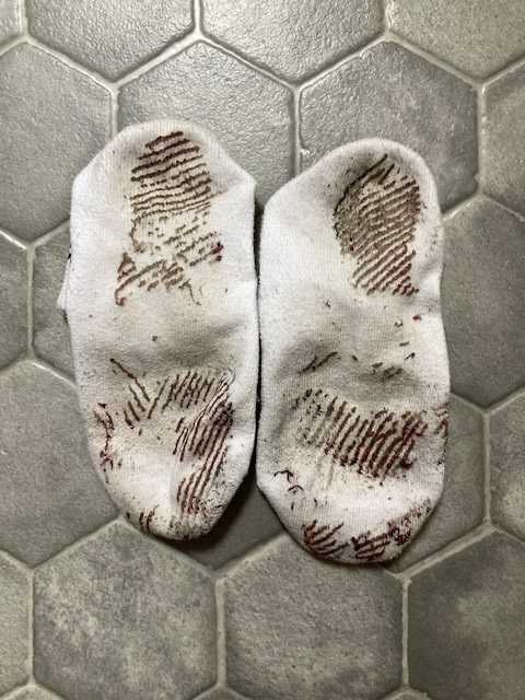その際、床に塗ったボンドのオープンタイム中でしたが、わたくし、その床に両足着地してしまいました。