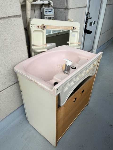 この洗面台は2階にありました。シンクが陶器なので本当に重い。