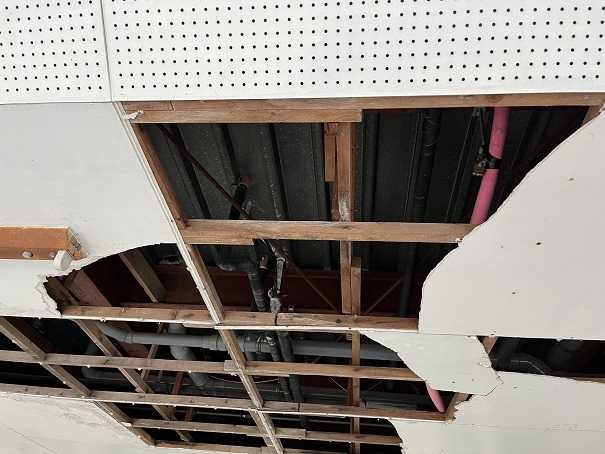 物件の前を通ると、出窓の下の外壁が落ちています。