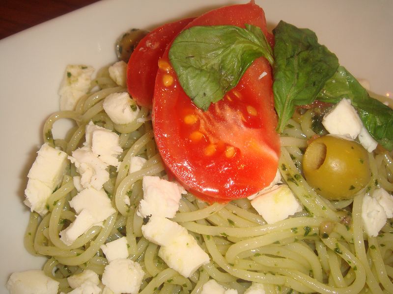 トマトとバジルのモッツアレラチーズ冷製仕立て ジェノベーゼソースに、「冷たい引き締まった、コシのある生パスタ」を絡めて作りました。とにかく歯ごたえ抜群です。さらに、くせがまったくなく、たまらない食感のモッツアレラチーズを一緒にどうぞ♪夏は、もちろんですが、冬でも年中、人気の生パスタです。日本でも、おなじみのジェノヴェーゼは、バジリコをふんだんに使い、松の実、アンチョビ、ニンニクをペースト状にしたソースです。 バジルの冷製パスタ 簡単レシピ (2人分) パスタ 300g程生バジル 適量にんにく 3~4カケオリーブオイル 適量 塩・コショウ 小1杯トマト 適量1)にんにくをオリーブオイルたっぷりで、炒める。2)パスタを茹で始める。3)にんにくは、こげない程度まで炒める。4)最終的に塩・胡椒を入れてよく炒める。5)火を止めて冷ましておく。そこへバジルを刻んで加える。6)熱が冷めた頃、茹で上がった麺を氷水で冷やす。7)最後に、パスタを絡めて、トマトをトッピングで出来上がり! *アンチョビがあれば、塩コショウと共にいれたら美味しくなります。 ★美味しさの秘密、「銀座パスフェは、こちらから」★美味しさの秘密、「赤坂パスフェは、こちらから」★★★「銀座パスフェ」がテレビに出ました 是非ご覧くださいテレビは、こちらから見てね。★銀座パスフェ の生パスタメニュー・美味しさの秘密は、こちらから ★赤坂パスフェ の生パスタメニュー・美味しさの秘密は、こちらから ★お客様の声 (味の評価等)はこちら、 イタリアンカフェをイメージしたお店。手作り生パスタのお店「銀座パスフェ」住所:〒104-0061 東京都中央区銀座8-2-14-1F電話:03-3573-5030 (お気軽にお問合せください♪)ホームページ: ≪PC版≫ http://www.pasfe.jp/ ≪携帯版≫ http://www.pastodio.co.jp/index_m.html自然「樹」をテーマにしたお店。手作り生パスタのお店「赤坂パスフェ」住所:〒107-0052 東京都港区赤坂2-14-28-鳳月堂ビルB1電話:03-3584-2505 (お気軽にお問合せください♪)ホームページ: ≪PC版≫ http://www.pastodio-akasaka.com// ≪携帯版≫ http://www.pastodio-akasaka.com//index_m.html