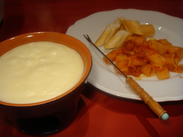 チーズフォンデュDE生パスタこれは、うまい!チーズフォンデュに、濃厚トマトソースのリガトーニ(ショートパスタ)をタップリつけて食べます。トマトの風味とチーズがマッチして、も~たまりません。チーズ好きには、必ず、食べてもらいたい逸品です。また、リガトーニの歯応えがとても合います。 赤坂パストディオのみで提供中赤坂パストディオは、こちらから