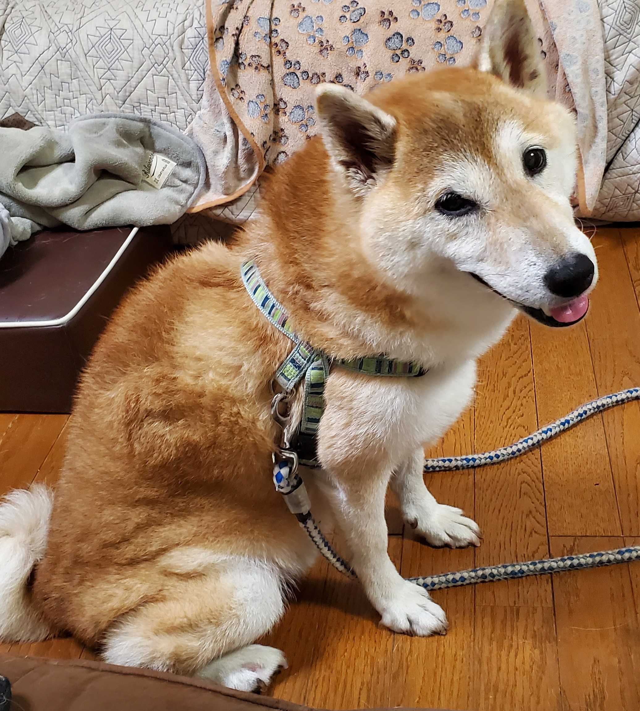 今朝の気温は10度と、ぐっと温度が下がったので、裏フリースの綿コートを着て、散歩に出かけた。コロは気持ちがいいのか、長い距離を歩いた。お天気がいいので、ソファーカバーを洗濯する。ソファーをコロに占領されることが多いので、日向ぼっこをしている最中など、空いている時を狙ってカバーを入れ替えたルーティンの家事を進めるながら、台所の一部から丁寧掃除を始める。食糧庫の一部も点検して、賞味期限の切れいているものを、廃棄する。色々頑張ったのでおやつを食べる。薄いパリッとしたせんべいの生地の間に黒ゴマあんで包んだ餅がが挟まれている。二階の寝室のモップ掛けをする。コロは火曜日に動物病院受診したが、皮膚の状態が良いので、薬の量を減らすことになった。これで最低限の量になる。耳の方も落ち着いているので、減薬して1週間様子を見て、状態が良ければ受診間隔を1週間から10日にのばす。体重が13キロまで減ったので、ダイエットはやめることになった。えさについてはとりあえず、5%まで増やしても良しということになった。お医者さんにいってから、お薬の量が減りました。その代わりご飯の量が増えました。ちょっとうれしいですbyコロ