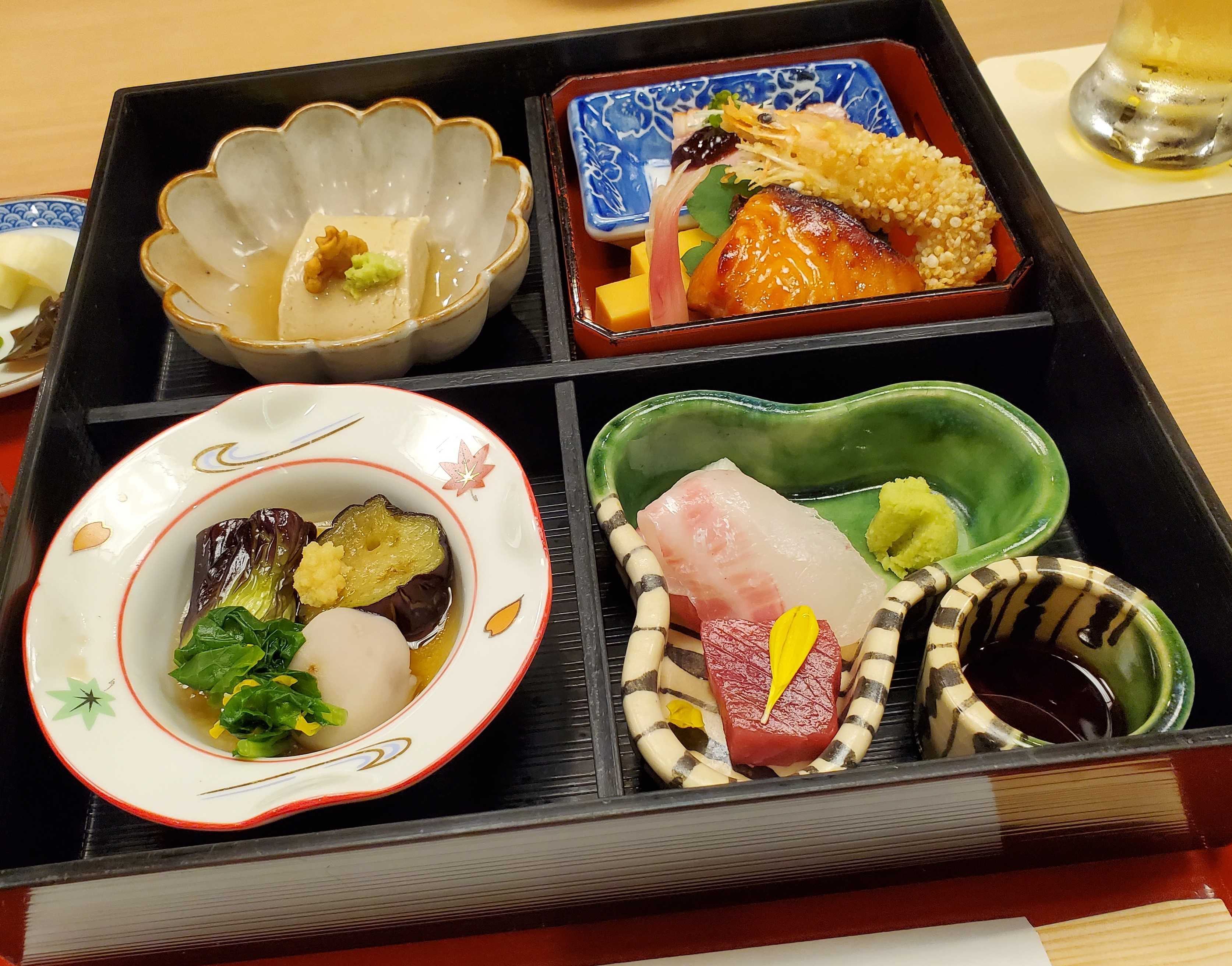 今日も21度と快適な気温。コロも散歩の距離がながくなり、少し早めに散歩に出ても、帰りはいつもより遅くなる。僕はまだまだ元気ですという感じ。今日は10時すぎに外出予定なので、手早く家事を進めた。以前始めて配属された支店で、何年か一緒に働いたことのある女性の中で特に仲の良かった人たちが、年に1度集まっている。年齢は幅があるし、それぞれ異動になって出て行っても、最低年に一度はあっていた。30年ぐらいは続いている同窓会だ。中にはそれ以外でもあっている人もいるが、年に一度会うひとでも、昨日別れた感じで違和感なく話ができるのがうれしい。以前迷子になった人がいるので、駅直結とかわかりやすいところということで、会場を選んでいる。おしゃべりに花が咲くので、個室というのも必須条件(笑)ということで、これは駅直結のデパートのレストラン街にある美濃吉という日本料理店での松花堂弁当とデザート。2時間近くおしゃべりをして、喫茶店で1時間ほどまたしゃべった。今日もお母さんは朝から夕方までお出かけしてました。お母さんのお出かけはちゃんと門扉まで見送ります。他の人は家の上がり框のところまでです。今日は枕部分をお腹に抱えて寝てました。byコロ