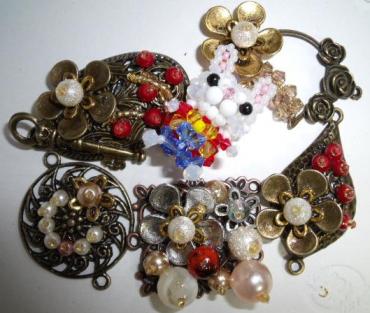 今、家の片付けをしてて・・・大変なことになってるので、あまり色々作れないのですが・・・全く何も作らないではいられないので、簡単に作れるアクセサリーのパーツ等を作ってます。ひとつでも使えるし、組み合わせても使えるしと・・・作り置きしておこうと思ってます。にほんブログ村中央のウサギはホビックスのアリスの白うさぎです。 それから、銀色の透かし金具に色々くっつけたブローチ等も作ったり、フルーツの指輪とかも作ったりしてみましたが、この指輪・・・派手すぎです。(中央のは指輪です)それから、久々にパワーストーンのワイヤーアクセサリーも作ってました。ラベンダーアメジスト・ターコイズ・クラック水晶ですが・・・・片付けの途中で材料がないので、こんな簡単なのになってしまいましたが、シンプルなのもたまにはいいかな~・・・とか思います。いつも派手派手なので・・ 久しぶりにポチッと応援して頂けると嬉しいです~!!にほんブログ村