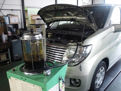 白iQのファミリーカーのエルグランド先月オイル交換とメタライザーを投入しエンジンが静かにでも旅行に行ったこともあり走行距離が一気に増加なのでメンテナンスのため黒70さんのお店へまずはオイル交換短期間に一気に走った割にはエンジンオイルはまだキレイでも長時間走るとだいぶ熱ダレしていた感じが続いては注文しておいたブレーキパッドも交換タイヤを外してみるとフロント・リアとも半分くらいの減りでしたまぁそれでも40000キロくらいの距離は走っているのでさくっと交換してもらいましたチョイスしたパッドは…赤色が目立つ~最近はココのパッドがおススメのようですねフロント・リアとも新品と比べるとやはり全然違う~最後はATフルードを交換これも交換サイクルの20000キロの割にはずいぶん汚れてたこれですっかりリフレッシュしばらくはノーメンテでいけるかな