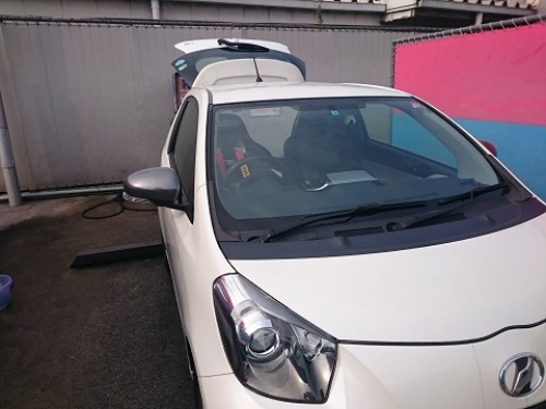 ここのところ休みのたびに雨に降られていたので車検の時にコーティングのメンテナンスをした白iQも汚れまくりこのままだとイカンということで洗車場へ行って洗ってきました平日の朝から行ったのにコイン洗車場は何故か一杯少し待って何とか場所を確保して洗車スタート今回は汚れが半端ないそれでもコーティングのおかけで少ない労力でキレイに撥水効果もすぐに復活しました洗車終了して拭き上げ場所へ移動ドアやボンネットを全開にして車内を風通しそして拭き上げをスタートiQはボディが小さいので時間は短くて済みますね~エルグランドとは大違いそれでも掛かった時間は半日おかげで…すっかりキレイな状態に戻りましたしか~し洗い終わったら雨がポツポツ雨降るなんて聞いてないよ~