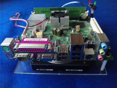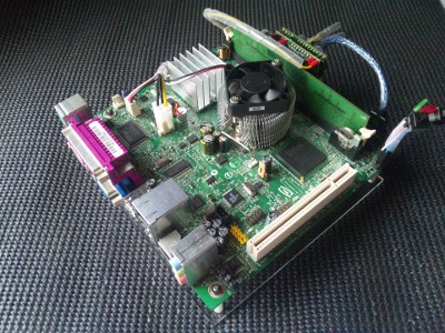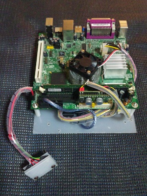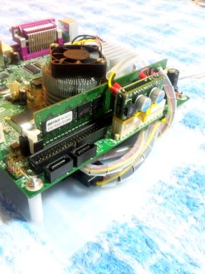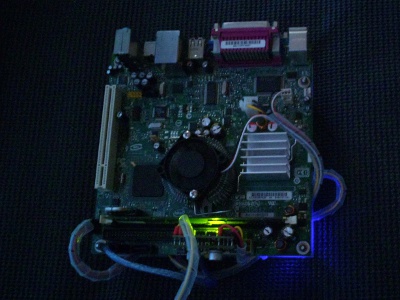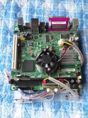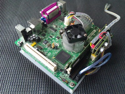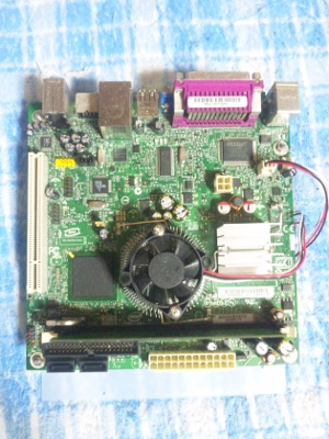 ネットに特化し、静かで、消費電力も低く、できるだけ小型に、そして、他にはないイメージのケースを作るということで第6回目です。一通りパーツがそろったので、実際にWindowsXP Pro Sp3を入れての動作確認です。ちゃんと動きました。ワットチェッカーで消費電力を測るとIdle:33Wでした。構成はM/B:D945GCLF2(Intel) HDD:DDR2/533 512MB(Buffalo) Mem:HDS722525VLAT80(日立)電源:偽PicoPsu(不明)ACアダプター:ADP-150BB B(Dell) という構成です。(光学ドライブはOSインストール時のみに使用し、消費電力計測時には外してします。)全体的にはまずまずの消費電力だと思います。こんなものでしょう。HDDをSSDに変えるともう少し下がると思います。音はファンが1つあるので若干しますが、うるさいというものではないです。HDDはカリカリと動いているのがわかります。若干音が大きいです。静音パソコンには少し遠い感じですが、まずはこれで進めようと思います。動作確認も取れたので次回からいよいよ本番のケース作成に取り掛かります。さてさて、どのようなケースになるのか。