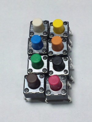 前回作製した電源スイッチ。ここで使用したタクトスイッチですが、部品が余り今後の作り直し分を引いても残りそうなので楽天オークションに出品します。出品内容はタクトスイッチの単品です。ユニバーサル基板(ピッチ2.54mm)に取り付けられる押しボタンのスイッチです。スイッチを押している間「ON」になります。押していない間は「OFF」です。色は白です。サイズは定規による目算ですと、約6.5mmの正方形です。高さは約7mmです。(足のサイズは含まず) 実際の使用例です。配線ですが、下のように配線します。 ハンダ付けをしたところは熱収縮チューブを使ってます。間違って配線するとずっと「ON」のままです。スイッチを押しても押さなくても通電の状態になります。。ご注意を。電源スイッチを自作でなんとかしてみたい方はどうぞ。価格は1つ15円です。