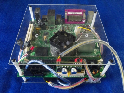 ネットに特化し、静かで、消費電力も低く、できるだけ小型に、そして、他にはないイメージのケースを作るということで第27回目です。今回はマザーボードだけのまな板です。今まではHDDを下段に入れていましたが今回はマザーボードのみです。世間で一般に売れれているまな板ですが、大体まな板にネジきりがしていあり、6角スペーサーを使ってマザーを止めるというのが一般的です。このネジきりが結構難しい。。そこで今回はこれを使いました。ジュラコン製の6角スペーサー10mmです。両端にM3のネジが切ってあります。組み立て方はアクリルのまな板の裏からM3×6mmネジを通します。ジュラコン6角スペーサー10mmを入れます。裏から見るとこんな感じです。同じように4ついれます。最後にマザーボードをのせ、プラスチックのワッシャーをかまし、M3×6mmネジで止めます。プラスチックワッシャーはネジが原因でショートしないように入れていますが、マザーボード上のネジ周りはそうならないよう余裕を持って設計されているようで必要ないかもしれません。裏のショート対策はジュラコン製なので必要ないでしょう。1cmの隙間はこのようになります。裏はこのような感じです。