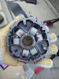 現在入れている15gのローラーを12gに変更してみました感想は・・・・乗りにくいノーマルのマフラーなんで15gぐらいがちょうどなんですかねぇすぐに15gに戻しましたやっぱり15gは乗りやすいですさて今からマフラー探し始めます