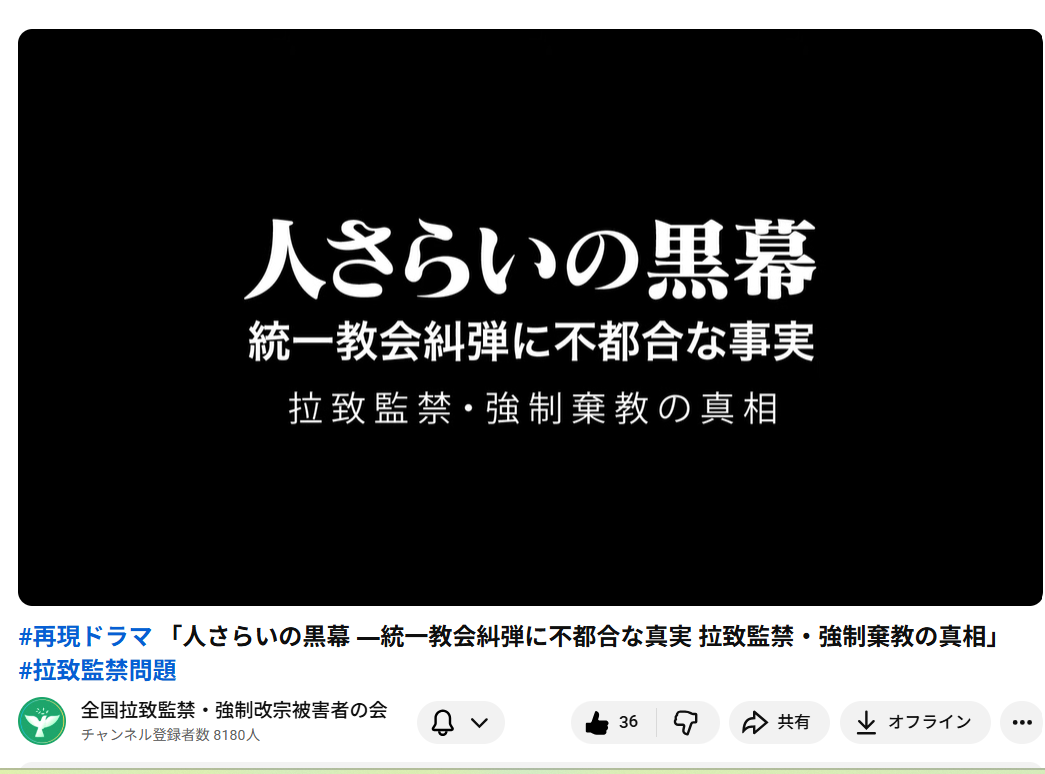 #再現ドラマ 「人さらいの黒幕 ―統一教会糾弾に不都合な真実 拉致監禁・強制棄教の真相」2025/11/29なぜ医師が“人さらい”に遭ったのか? ̄ ̄ ̄ ̄ ̄ ̄ ̄ ̄ ̄ ̄ ̄ ̄ ̄ ̄ ̄ ̄ ̄「入院患者15名を抱えていた自分が、まさか拉致監禁されるとは…」──医師・小出浩久氏(『人さらいからの脱出』より)本作は、小出浩久氏の著書である「人さらいからの脱出」より、“ #衝撃の実話 ”を原案とした映像作品です。 ̄ ̄ ̄ ̄ ̄ ̄ ̄ ̄ ̄ ̄ ̄ ̄ ̄ ̄ ̄ ̄ ̄全国拉致監禁・強制改宗被害者の会がおくる、拉致監禁被害を世に伝える決定版映像(再現ドラマ)です。先立って拉致監禁再現映像を自主製作された、「劇団孝情新居浜」の劇団員たちと、全国から公募された出演者が熱演した拉致監禁再現パートと、国際弁護士である中山達樹氏による解説パートの2つから構成されています。見る人に拉致監禁の苛烈な被害と問題点を投げかける、渾身の映像です。 ̄ ̄ ̄ ̄ ̄ ̄ ̄ ̄ ̄ ̄ ̄ ̄ ̄ ̄ ̄ ̄ ̄||◤全国拉致監禁強制改宗被害者の会ウェブサイト◥||https://kidnapping.jp/【中古】 人さらいからの脱出 違法監禁に二年間耐えぬいた医師の証言 / 小出 浩久 / 光言社 [単行本(ソフトカバー)]【ネコポス発送】一休さんのような機知(トンチ)ではありません。奇知=人とは異なる知恵すなわち神様の知恵世界平和を願う奇知の外の凡人が徒然なるがままに書く日記です。↓↓ にほんブログ村ランキング参加中。応援クリックお願いします。↓↓