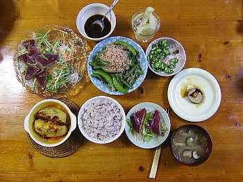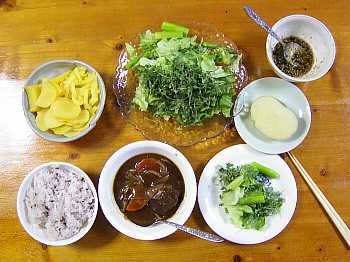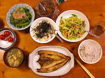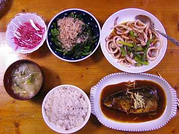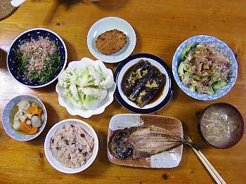 昨日の夕食はアジの開きがメインで他は揚げ茄子と、里芋人参豚肉などの煮物それにアボガドとホウレンソウのお浸しとコロッケなどでした。ご飯はいつもの雑穀で無く小豆ご飯で、もち米も入っているので、ちょっともちもちしています。見るからに質素で安上がりの夕飯ですけど、カロリー量はどうなんでしょう、酒と合わせて良しとしましょう。