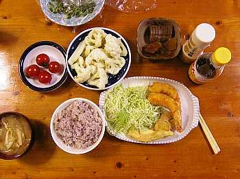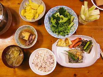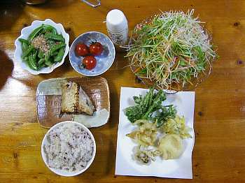 ネタ不足でまたまた昨日の夕食です、見るからにヘルシーな食事です、焼き魚と野菜の天婦羅それに、ウサギの餌の様な野菜サラダです。天汁も盛ってから写せば良かったですけど、ちょっと寂しい写真になってしまいましたが、天婦羅には旬のフキノトウが最高に美味しかったです。サラダは見た目が悪いですけど、細切りする事で新しい食感を味わう事が出来ます。