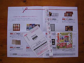 今年のお年玉年賀葉書の抽選が先日あり、頂いた年賀状を調べたら4等2本と3等1本が当たっていました、ラッキーー。早速、昨日引き換えに行って来ました、切手シートは頂いて3等の有名ブランド食材は色々合って、その中から選んで注文する様なので、パンフレットと注文葉書を貰って来ました。ついでに余った年賀状と書き損じた年賀状を、80円切手に変えて貰いました、一枚5円の手数料がかかりました。