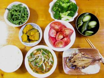 採の国の今日は曇りでその後小雨昼には一時晴れと変な予報です、部屋は少し明るい状態です。今の Pearun の部屋の様子です。(時間限定Liveです。)・朝のLive終了しました。昨日の晩御飯はアジの開きがメインで他に肉団子のスープ、カボチャ煮、トマト、インゲン、ブロッコリーそれにお新香です。調味料が付いていない食材は好みで、マヨネーズとかポン酢をかけて食べます、これも手抜きと言えばそんな感じもします。政治家の言葉を借りると、感想は質素で「何も言えねえ」、ダイエットに良さそうで「超うれしい」と言った所です。そうそうデザイン変えたけどどう..?