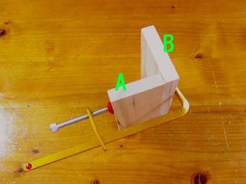 意外とクランプの使い方をご存知で無い方が多くおられましたので、ちょっと解説して置きます。Aの木片とBの木片を接着剤で接着したい時に、写真の様にして接着剤が乾燥するまでしっかりと押さえ付けて置く様な用途に使います。所が今回ゲットした物はネジをきつく締めて行くと、ネジが横にまがったりしてしっかけと固定できないんですよ。