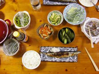 採の国の今日は午前中晴れ午後は曇りの予報です、部屋は明るい状態です。今日からプログのコンテンツが変わるとか、言ってませんでしたっけ、変わった感じがないけど、延期になったのかな...?昨日の晩御飯は少し値上がりした秋刀魚をです、今時期の秋刀魚は初物とは言うのかもしれないですけど。秋刀魚は丸ごと塩焼きにして、少しこげた皮も一緒に食べるのが最高です。Pearun は大根おろしに酢を少し入れて、塩焼き秋刀魚に乗せて食べるのが好きです、お醤油などより甘みが有って美味しい食べ方かも知れません。他はまだラップ状態ですけど、モズクと人参、胡瓜、大根を千切りした酢の物などです。