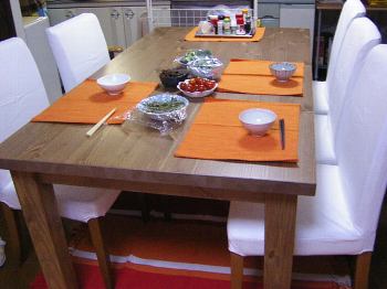 採の国の今日は1日冬晴れの予報で、部屋は明るい状態です。昨日の夕方相棒と娘がふうふう言いながら帰って来た、みたらこのダイニングセットをゲットして運んで貰い玄関に運びいれていた様だ。所が全部組み立て式なので、それからが大変でした、梱包を解いてドライバーとスパナで格闘する事2時間ほどで、テーブルと椅子5個を組み立てました。普段パソコンしかやらない手で突然ドライバーを握った物だから最後には豆はできるしテーブルの板を2階に運ぶ時階段でこけて、ぶつけた腕は痛くなるし、えらい目に合いました。