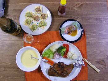 採の国の今日は午前中晴れ午後から曇りの予報で、部屋は明るい状態です。今の Pearun の部屋の様子です。(時間限定Liveです。)・朝のLive終了しました。子供たちが仕事の関係で休みの日でないと家に来れないので、昨日の夜は一足早いクリスマスを祝いました。料理は定番の鳥の焼いた物、生春巻き、コーンスープ、酒の摘みにクラッカー、飲み物はシャンパンなどでした。そうそう当然ケーキやミックスフルーツも、食事の後に少し時間を置いて食べたんですけど、写真を写すのを忘れている内にお腹に納まってしまいました、残念...!!