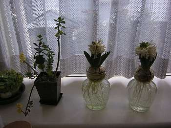 採の国の今日は1日晴れの予報です、部屋は少し明るい状態です。今の Pearun の部屋の様子です。(約7時~10時頃の時間限定Live)・朝のLive終了しました。以前咲いたピンクの花の時に芽が出たばかりだった、ポット栽培のが白い花を咲かせました、これも多分前に教えていただいた、ヒヤシンスだと思います。隣の以前から咲いている黄色い花はまだ咲いています、ずいぶん長く咲いている花ですけど、こちらも名前は解りません。部屋の中は暖房しているので、外の気温に関係なく、後数日で満開になると思います。
