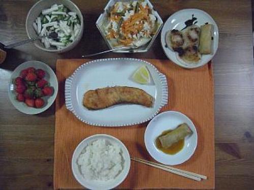 採の国の今日は1日晴れ後曇りの予報です、部屋は明るい状態です。今の Pearun の部屋の様子です。(約7時~10時頃の時間限定Live)・節電の為本日のLiveは中止します。「昨日の晩ご飯」は鮭のオイル焼きがメインで他には、春巻きと餅の中何か入った物、豆腐インゲン人参などの煮物、長芋オクラ昆布などの和え物、デザートに小さいイチゴなどでした。オイル焼きは皮まで美味しく食べられますので好きな料理の一つです、ねばねば食材の和え物はそのままご飯に載せて食べると美味しいです。春巻きと一緒に有る餅に何か入った良く解らなおかずは、柔らかな餅の中に塩味の具が入っている物です。