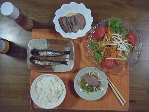 採の国の今日は1日晴れの予報です、部屋は明るい状態です。今の Pearun の部屋の様子です。(約7時~10時頃の時間限定Live)・節電の為本日のLiveは中止します。「昨日の晩ご飯」は焼きイワシがメインで他には、人参イカトマトなどの生野菜、ローストビーフなどでした。青み肴はあまり好きでは無いけど、イワシは味が有って美味しいと思う。珍しく出てきたのがローストビーフで、肉もこうするとパンでも、ご飯とでも良く合うし、酒の肴にもなるし、万能の料理ほうほうですね。ロースビーフは自宅では料理した物で無くゲット物ですけど。