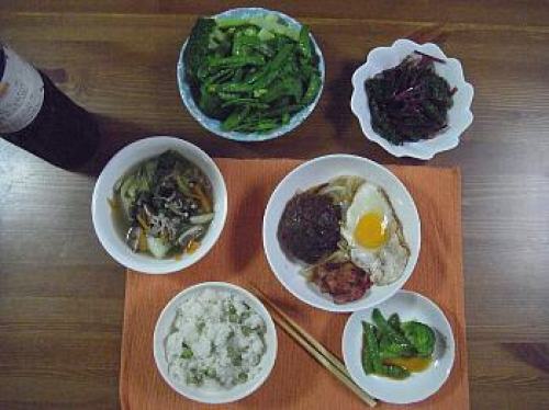 採の国の今日は午前中曇り午後は晴れの予報です、部屋は明るい状態です。今の Pearun の部屋の様子です。(約7時~10時頃の時間限定Live)・節電の為本日のLiveは中止します。「昨日の晩ご飯」はハンバーグと玉子焼き唐揚などの盛り合わせがメインで他には、ホウレン草の素茹で、ブロッコリーとエンドウ豆の素茹で、チンゲン菜と茸や人参などの入った野菜スープなどでした。ご飯はエンドウ豆の炊き込みご飯で、我が家では珍しいご飯でした。ハンバーグの盛り合わせにはベースに玉葱の炒めたのが下に有り、甘味も有って美味しかったです。