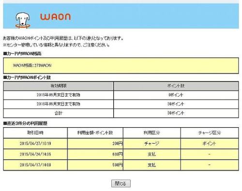 採の国の今日は晴れ一時曇りの予報です、部屋は明るい状態です。今の Pearun の部屋の様子です。(約7時~10時頃の時間限定Live)・節電の為本日のLiveは中止します。 ポイントをチャージWAONのポイントがちょつとたまったので、先日買い物に使える様にチャージしてしまいました。いつもの様にパソコンにパソリを繋いで、WAONネットステーションにアクセスし、WAONカードに書き込みしました。今回チャージしたのは200円で雀の涙ほどですけど、このカードで買い物をするのはお酒くらいなのなかなかポイントが溜まりませので、無駄にしない様に気が付いた時にぐにチャージしています。