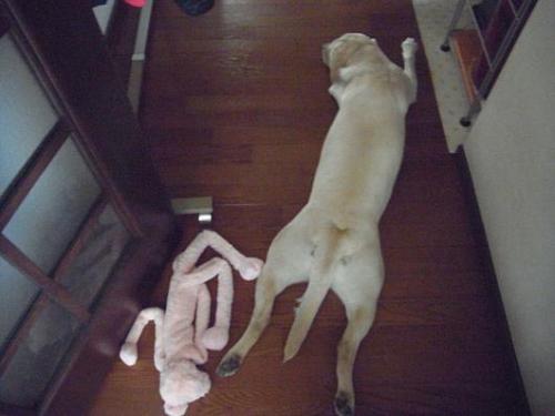 採の国の今日は一日晴れの予報です、部屋は明るい状態です。今の Pearun の部屋の様子です。(約7時~10時頃の時間限定Live)・節電の為本日のLiveは中止します。 フローリングの上で腹ばいになるティアラこのところ暑さ対策にテイアラも色々頭を使って涼しい方法を考えている様です、ゲージから出ると廊下の風通しの良い場所のフローリングの上に行って、お腹を床につけて腹ばいになり、少しでも涼しくなる様に努力しています。縫いぐるみもしっかり忘れずに持っていってます、ところで犬の知能指数ってどのくらい有るんでしょうね、Pearun が出かけようと、パソコンの電源を落として、帽子をかぶったりすると、ハウスって言う前に先読みされてサッとゲージにはいるんですよね。何だかこちらが言おうとしている事が解っている感じで、何処まで頭が良いのか、反射神経なのか良く解らないけど、そんな時可愛いですね、思わす親ばかになっちゃいます。