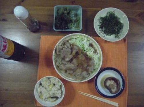 彩の国の今日は1日曇りの予報です、部屋は少し暗い状態です。今の Pearun の部屋の様子です。(約7時~10時頃の時間限定Live)・節電の為本日のLiveは中止します。「昨日の晩ご飯」は豚肉の生姜焼きがメインで他には、椎茸焼き、丘ひじきの素茹で、余り物の野沢菜漬けなどでした。ご飯は珍しく栗おこわでした、たぶんゲットして来た物です、生姜焼きの付け合わせは、玉ねぎの炒めた物とキャベツの千切りでした。生姜焼きは好きな料理だし椎茸も、野沢菜の漬物も今回はすべて好物でしたので、美味しくいただきました。