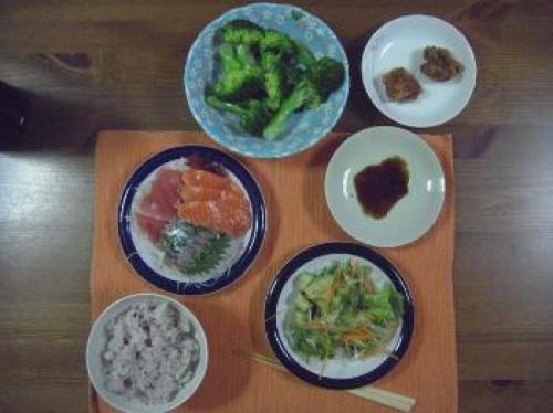 彩の国の今日は1日晴れの予報です、部屋は明るい状態です。今の Pearun の部屋の様子です。(約7時~10時頃の時間限定Live)・節電の為本日のLiveは中止します。「昨日の晩ご飯」は刺身の盛り合わせがメインで他には、野菜サラダ、唐揚げ、ブロッコリーの素茹でなどでした。刺身はあまり種類が無いので、多分新しく出来たスーパーから好みの物を選んでゲットして来た物の様です。さっぱり系のおかずで、こういうのは好きなメニューなので美味しくいただきました。唐揚げがちょっと小粒なのが残念ですけど、稼ぎがない年金暮らしではこんな物でしょう。