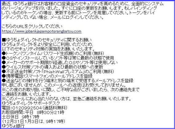 最近こんな偽メールが沢山送られて来ます、皆さんの所には来ていませんか、ぜったに引っかからない様にして下さい。