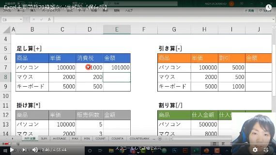 YouTube金子晃之さんのExcel主要関数79種類を完全解説