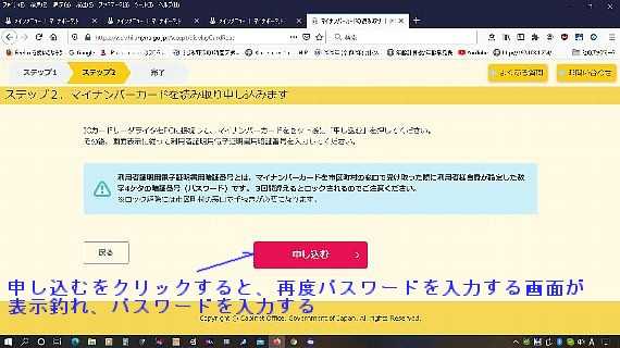 申し込むをクリックし再度パスワードを入力