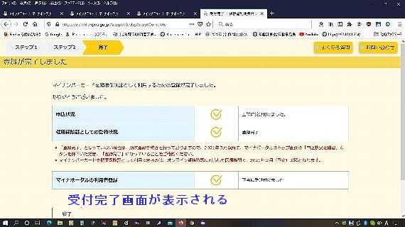 登録受付完了の画面が表示される