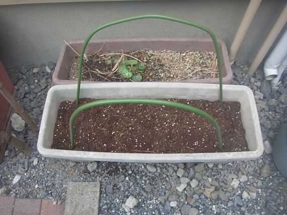 先日土 作りをしたプランター に、昨年収穫した大葉の種蒔きをしました、大葉は毎年毛虫やヨトウムシにやられるので、始めの内は虫除けの網をかけて置く事にし、アーチ状の鉄パイプを差し込んで、その上に虫除け網をかけて、洗濯挟みで止めて見ました。