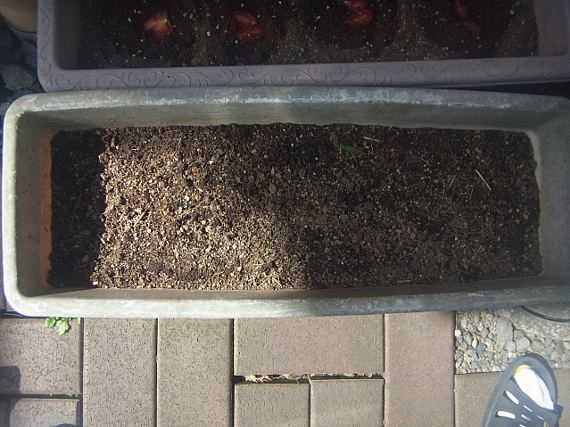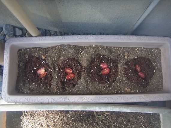 トマトとゴーヤーの種をプランターに蒔きました、石灰と野菜用の土で土作りをしたプランターに、ちょっと窪みを作りそこに更に100均でゲットした野菜用の土を入れて、そこにゴーヤーの種を4粒くらいずつ蒔いて、少し土をかぶせて置きました。