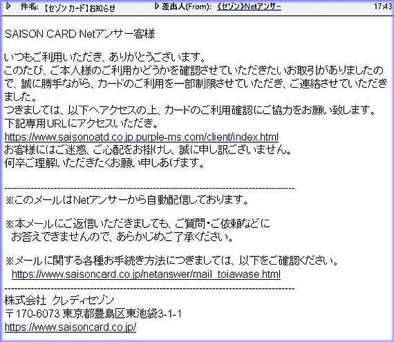 迷惑メールの内容