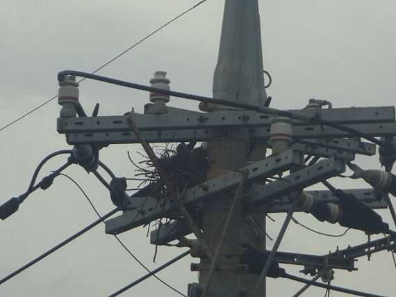 電柱の上のカラスの巣2