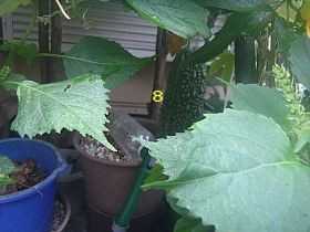 見えている所だけざっと数えたら10個ほど有り、最後の10個目はお尻の部分が少し柔らかくなっていたので、腐らないうちにと収穫してしまいました。