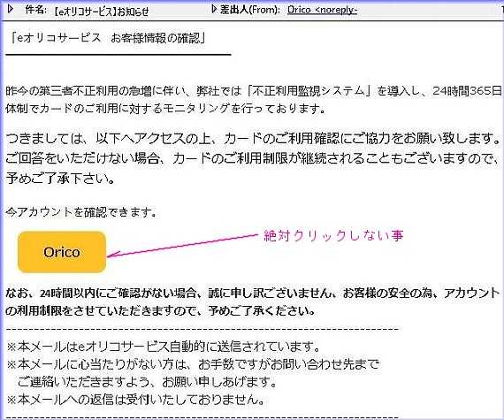 本日届いた迷惑メール、絶対にクリックしない様にしましょう。