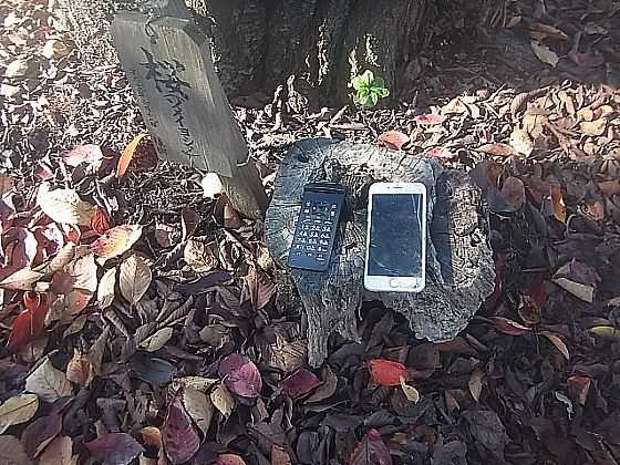 掃除をしていたら何と携帯電話の壊れたのとスマホが出て来ました、捨てたのか忘れたのか判らないので、目立つ切株の上に置いて置きました。