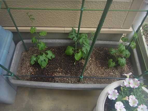 遂に見切りをつけた相棒達がゴーヤーの苗を、ホームセンターでゲットして来て植えました。