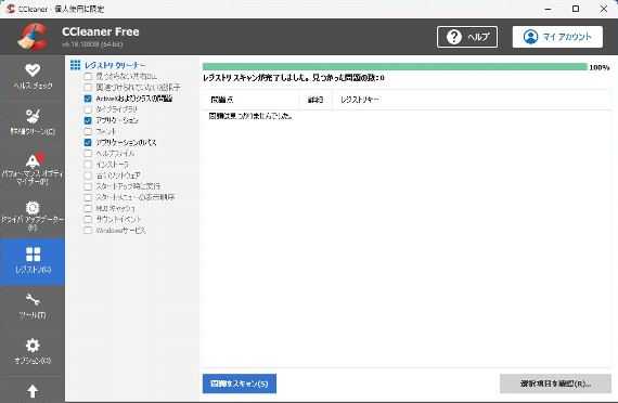 まず定番のレジストリーの掃除をしました、全項目を削除しても大丈夫ですけど、こちらはいつも、「見つからない共有DLL、Activexおよびラスの間顋、アプリケ ー ション、アプリケ ー ションのパス」などだけを削除しています。