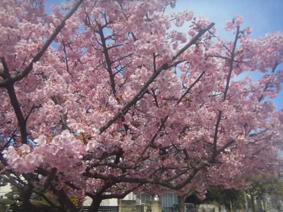河津桜が咲いたと言う便りが多くなったので、天気も良かったし家の近くの街道沿いの河津桜を見に行って来ました、ちょうど見頃の満開状態で綺麗でした。