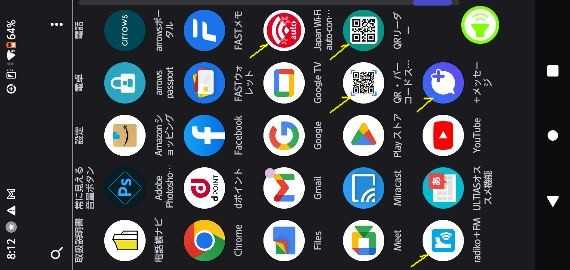 黄色い矢印がインストールしたアプリの主な物です、他にも有るかも知れませんが、削除したりした物も在るしはっきり判らない状態です。